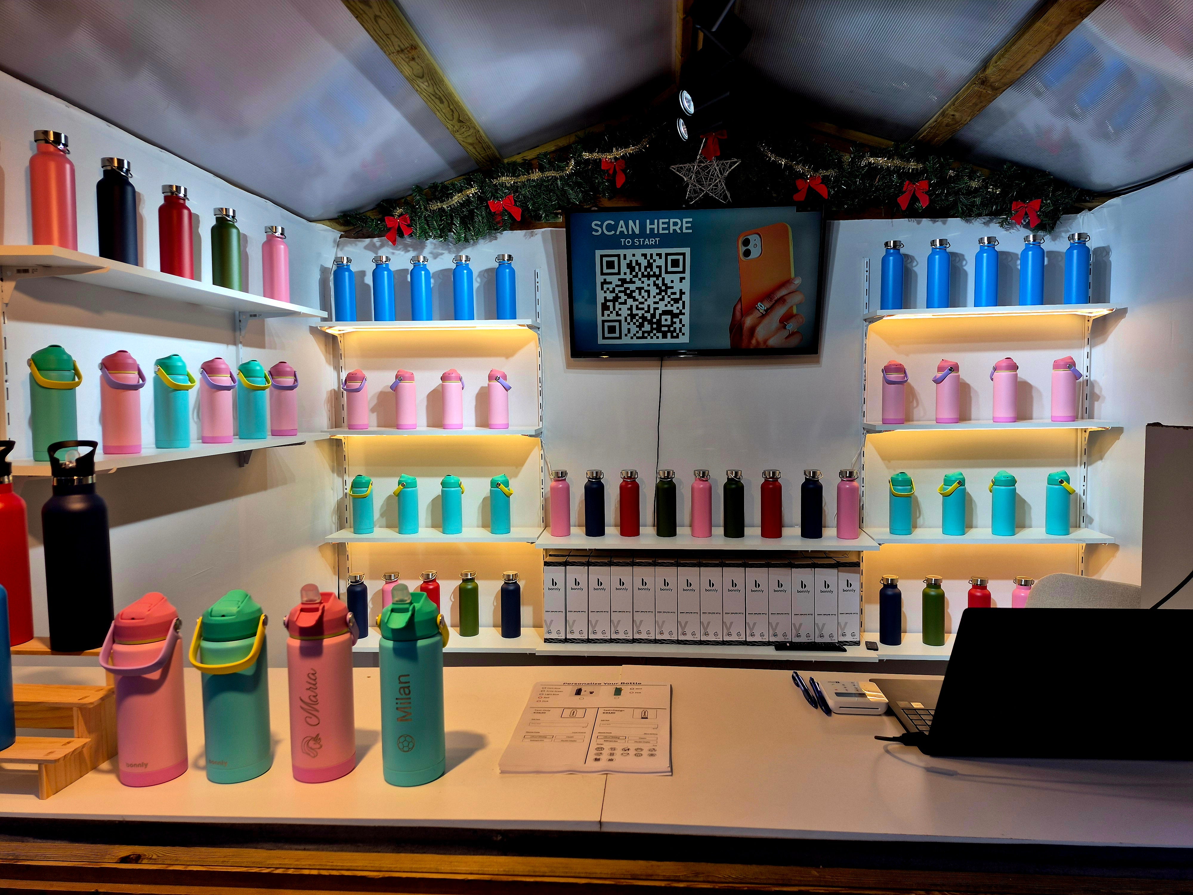 Come see us live at Korenmarkt, watch your bottle being engraved, and pick up the perfect gift for kids, friends, or family.
